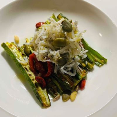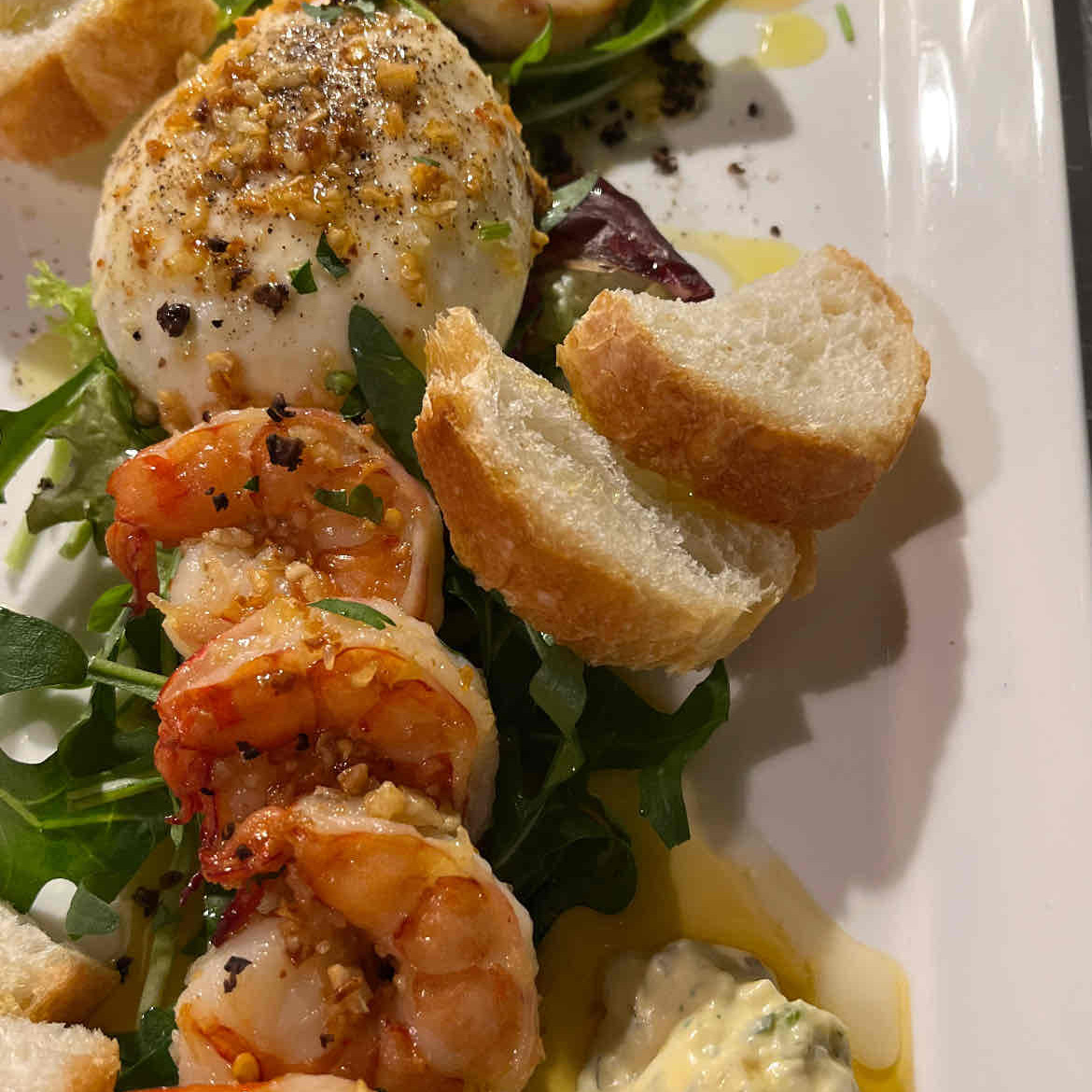 Grilled Peeled Shrimp with Burrata Cheese 2,500yen